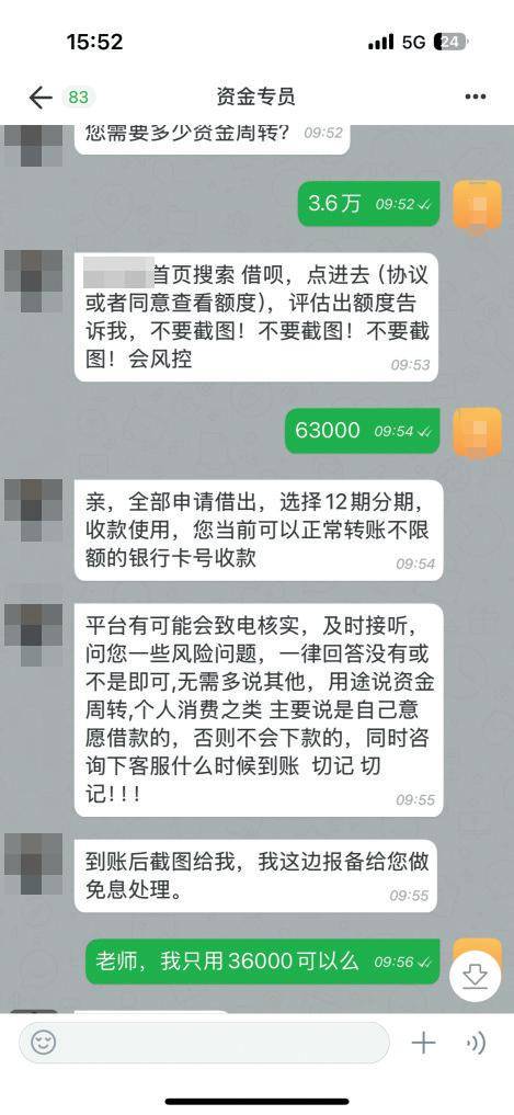 对方让时颖去进行信用贷款,并强调接到反诈中心电话“无需多说”。 受访者供图