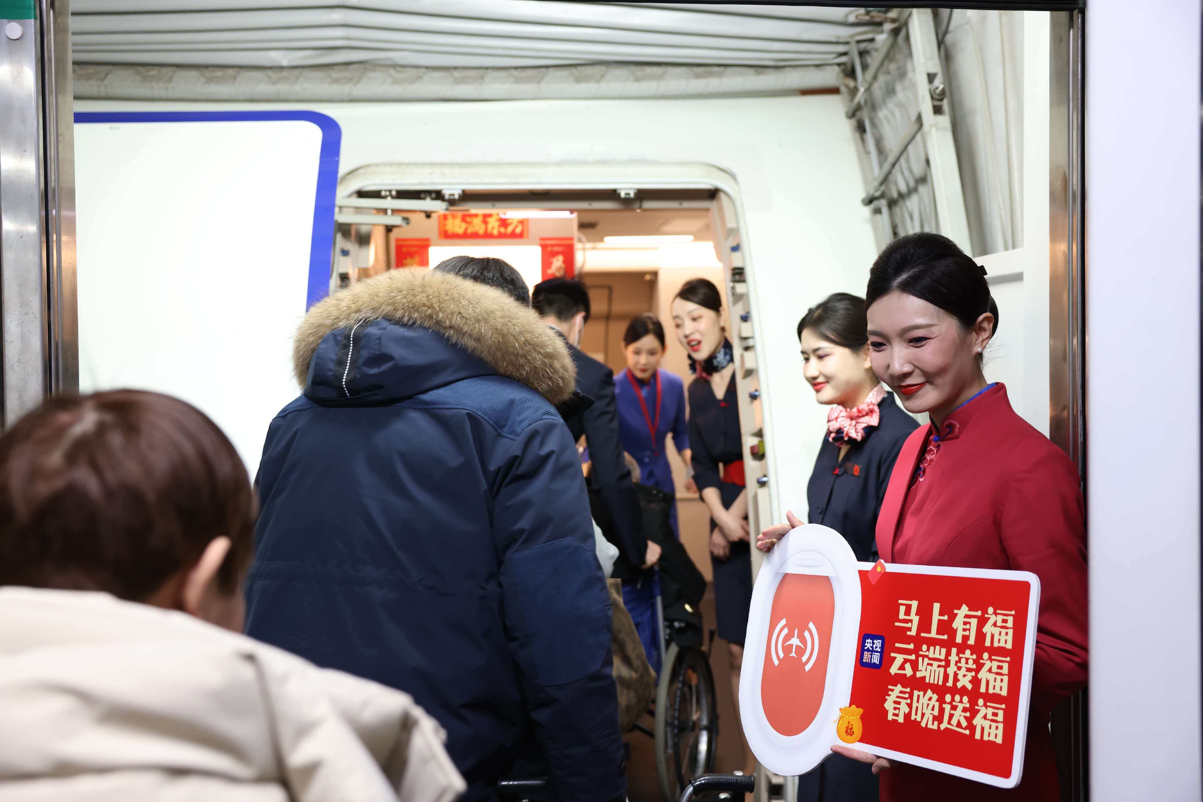 “‘锦绣中华・和美之春’,今天是农历除夕,我们即将迎来马年新春。在这个充满美好与幸福的节日里,我们全体机组成员向您致以最诚挚的问候!为让旅途中的您不错过任何一个新春瞬间,在空中也能感受这份团圆与喜悦,本次航班特别提供全程免费高速Wi-Fi服务。欢迎您连接使用。”