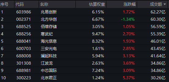 芯片ETF汇添富(516920)标的指数成分股多数飘红:北京君正涨超5%,澜起科技、中芯国际、江波龙涨超3%,寒武纪、三安光电涨超2%,兆易创新涨超1%。