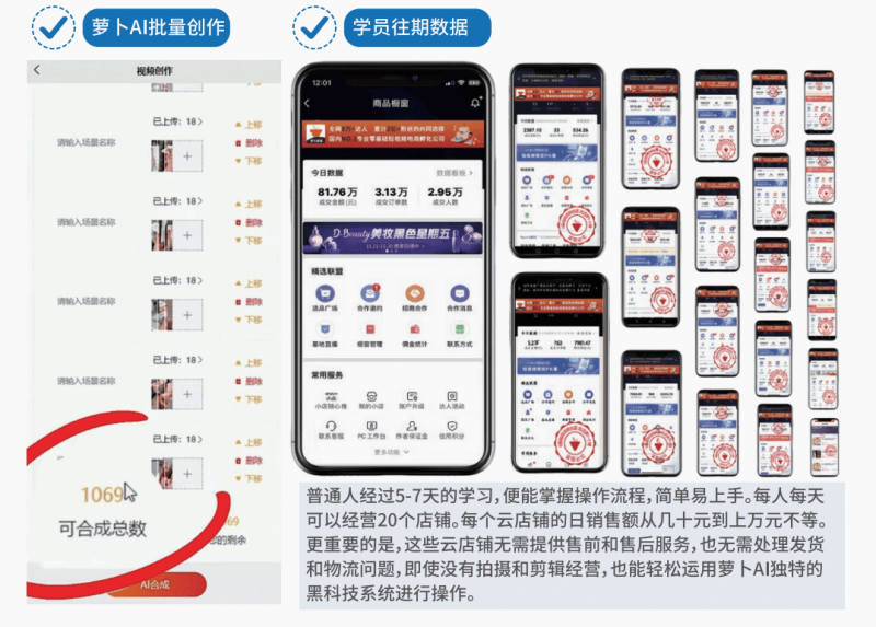 截至目前,萝卜科技已累计赋能超过10万名短视频创作者,服务粉丝总量超过2亿,累计销售额突破10亿元,并与华润集团、无忧传媒等多家行业头部企业建立了深度合作关系。有新学员借助萝卜AI单条视频播放量破百万、成交额超40万元;50岁住家月嫂不用拍摄剪辑,靠AI生成内容实现单日带货超100单;也有某路亚品牌借助萝卜AI的短视频矩阵与云连锁策略,次年销售额突破2000万元,单店日销稳定过万;某川菜馆接入云连锁体系后,三天即登上所在城市川菜及美食双平台前列,30天内实现800余桌到店转化,成本仅为原代运营的十分之一。这些案例证明,萝卜AI既能服务个人创业者,也能为实体商家带来可量化的业绩增长。