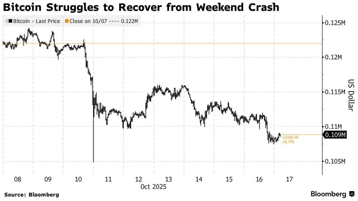 比特币在10月6日刚创下126,251美元的历史新高。数日后,中美贸易紧张局势升级引发超过190亿美元爆仓,多数主流代币同时遭遇大幅抛售。