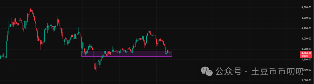 如果以太坊跌破3830,只有重新收复该点位,我才会考虑做多。因为这可能形成“假跌破”,通常反弹力度较强。另一个潜在的做多点是3690,需等待后续反弹确认。