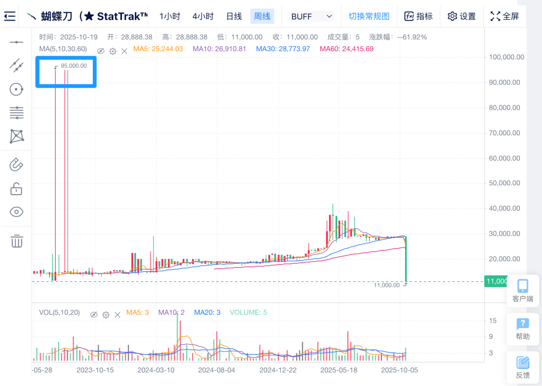 小发同事的自动化配色蝴蝶刀,在事发之前从8000多一路涨到了13000左右,然而现在。。。