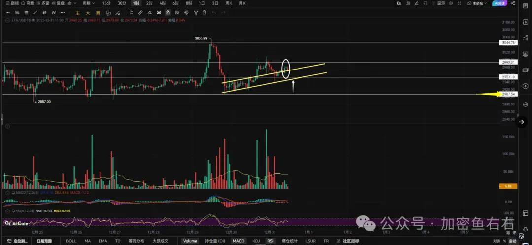 (1)等待以太回踩2907埋伏做手多单,防守2833,目标3035附近(奶口就跑);