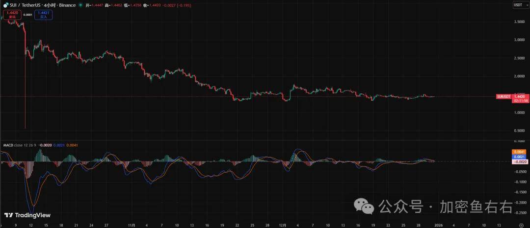 SUI依旧还是下跌抄底首选之一! 反弹每次都是最强势的之一,所以每次BTC瀑布的时候就是我们抄底SUI的时候。 等一波机会吧!预计1.4附近抄底现货,其他价格就完全没什么性价比了!,我预计元旦假期会大涨,等美股,A股开盘我再做空。