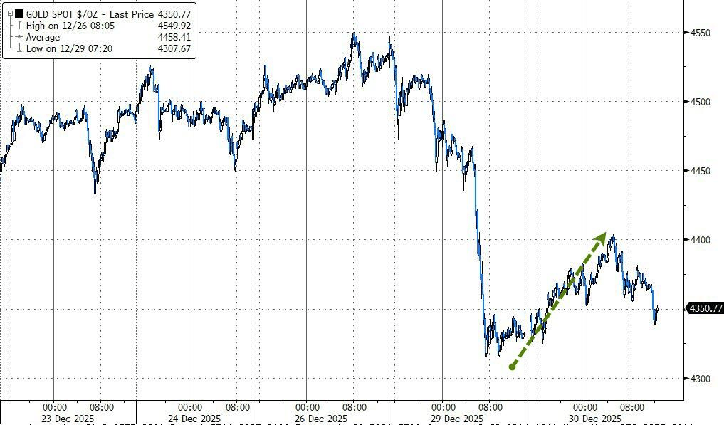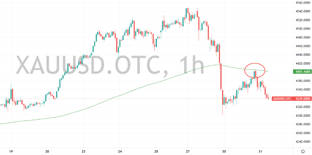真正的焦点,依然集中在贵金属市场。在经历前一交易日堪称“踩踏式”的回落后,黄金出现了明显的技术性反弹。现货黄金一度重新站上4400美元关口,随后触及200小时均线后,在美盘回吐大部分涨幅。
