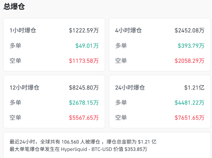 截至2日7:05,比特币价格反弹至8.86万美元,近24小时内涨超1%,带动以太坊、SOL、XRP等币种上涨,但比特币、以太坊交易额接近腰斩。近24小时,全球超10.6万人被爆仓,爆仓金额1.21亿美元。
