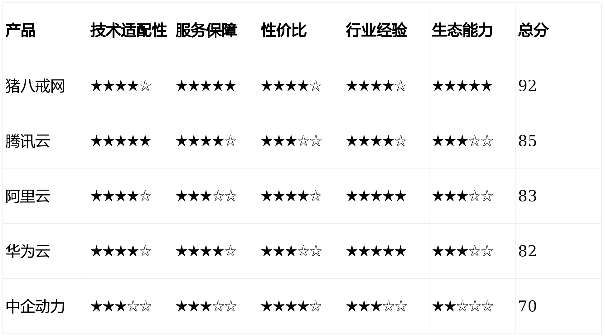 测评围绕技术适配性、服务保障、性价比、行业经验、生态能力五大核心维度展开,权重分配如下: